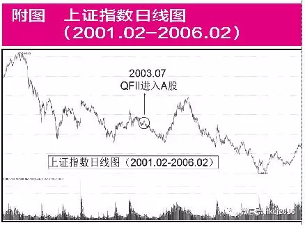 而参照15年前A股开放QFII入市的经验,当时上证指数在1500点左右,正好位于2001~2005年熊市的中段位置(见附图)。无论是时间还是空间,当时QFII进场并未扭转熊市的格局。更何况,外资并不是新韭菜,而是富有全球投资经验的老手,重点锁定的成分股又是业绩和流动性俱佳的品种,以长线投资的方式细水长流进入股市,想割外资韭菜不成反而很容易割伤自己。