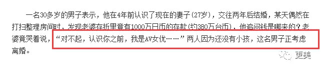 虽然结婚的AV女优很多,但离婚率也很高,曾经有媒体采访过日本男人,能不能接受自己的老婆是AV,很多人表示接受不了。
