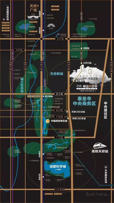 为天空之城加分的,就是它所在的区域。首先楼盘周边有规划地铁,项目门口600米左右是11号线大井口地铁站,预计2020年开通;其次,天空之城毗邻航空大世界度假村以及成都第一高建筑(预计将建成中国第一高楼,世界第二高楼),车程均在5分钟内;并且周边还有鹿溪河生态公园、新川中心公园。同时也将在附近建设商圈,引入企业。
