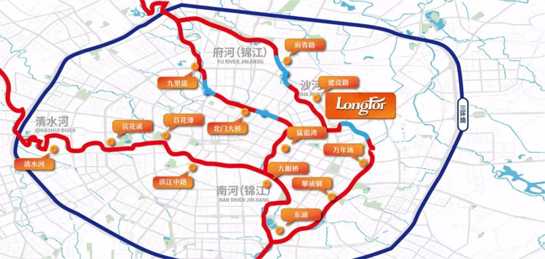 以三环为界,成都市内府河、南河、沙河三条主要河道总长47公里,占据滨河两岸的机会是94公里。但截至目前,三大河道沿岸已开发范围达78%,而在尚未开发的河段中,河岸线达到400米以上的,仅四段——分别是西北桥河边街段、大安中路段、升仙湖北路段和龙湖梵城所在的东二环段。