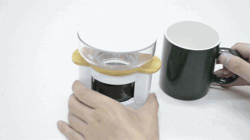 mini master的体积很小,只要在下面放个杯子,就能萃取咖啡。