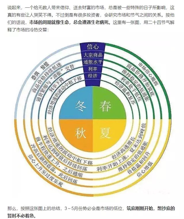 如果你已经看晕了,也有简单的玄学预测,比如这张图声称能用二十四节气解释虚拟货币市场的冷热交替。