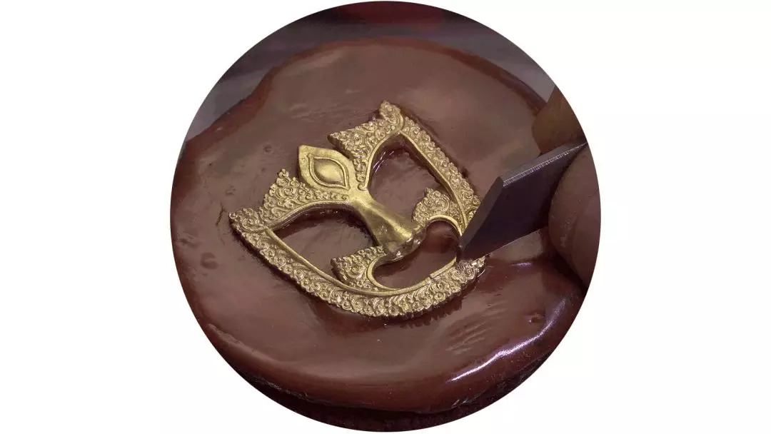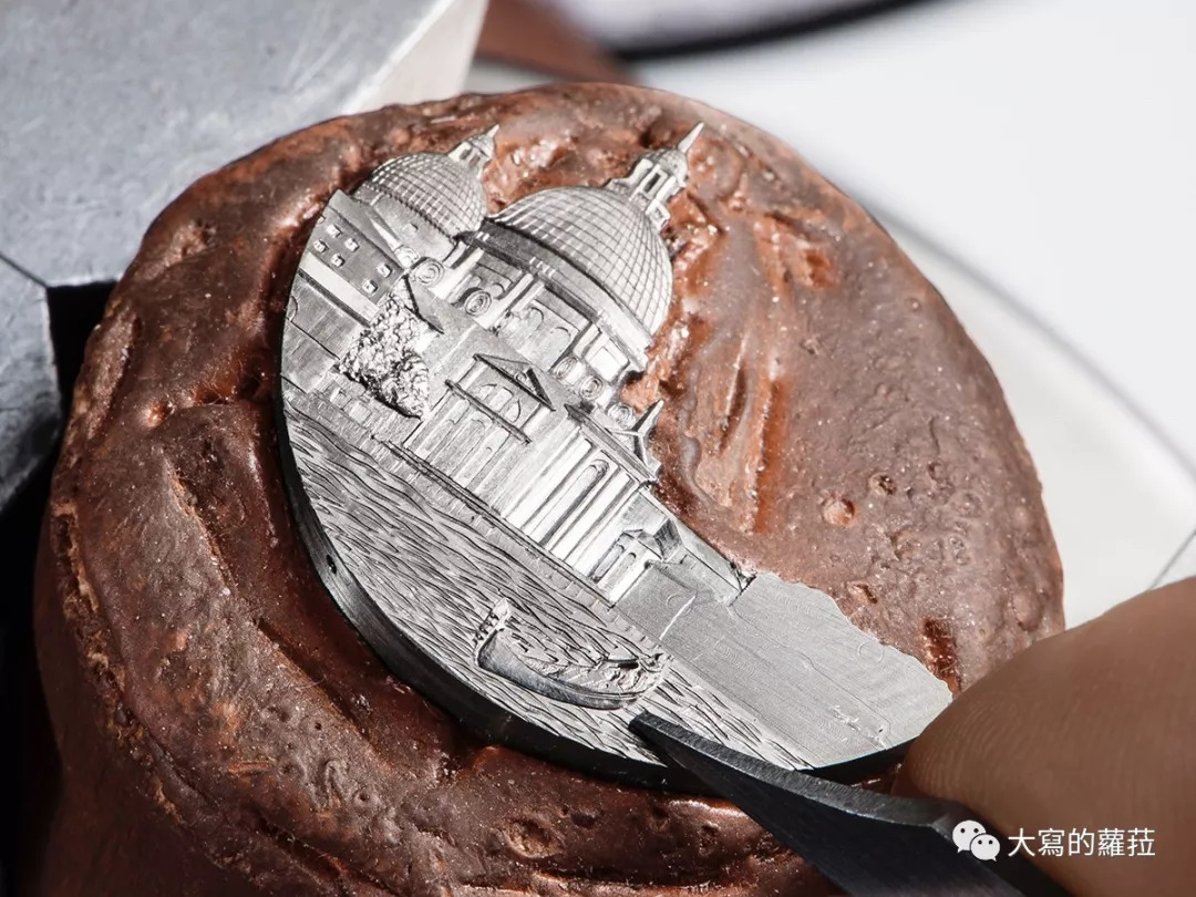 △ 金属微雕需在高倍数放大镜下以极其细腻的手法一点一点凿成。