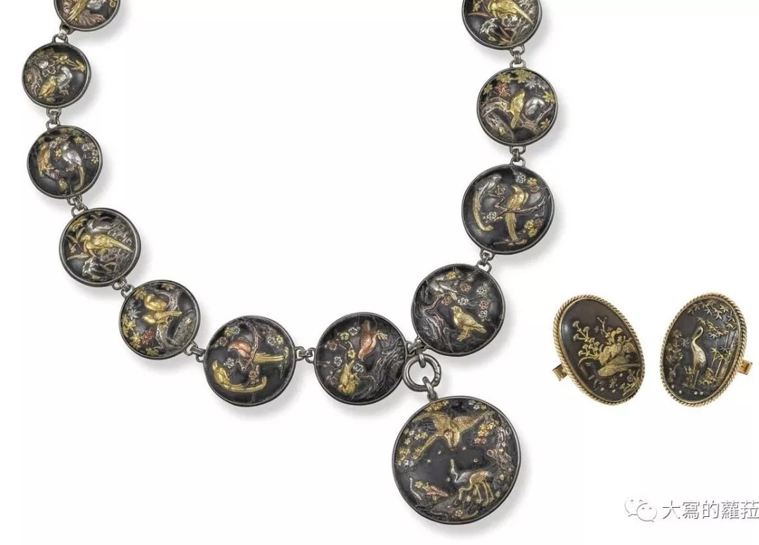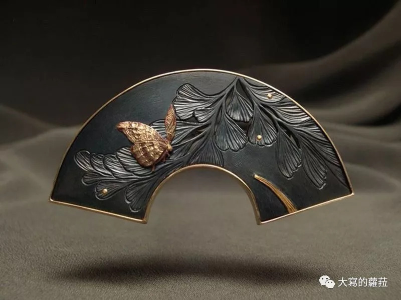 △ Shakudo是由红铜与纯金组成的铜合金,经过颜色处理后多结合雕刻、敲花及镶嵌等金工技法,历史可追溯自日本江户时代。