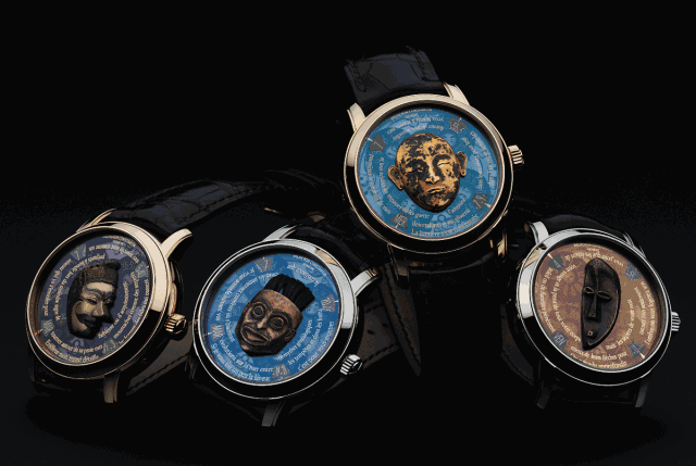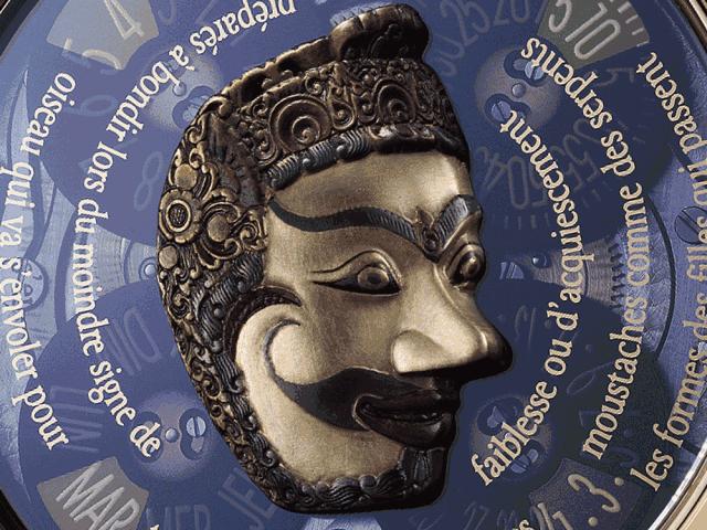 △ 江诗丹顿2007年开始连续三年推出装饰有古代世界各处的面具艺术大师系列表款。