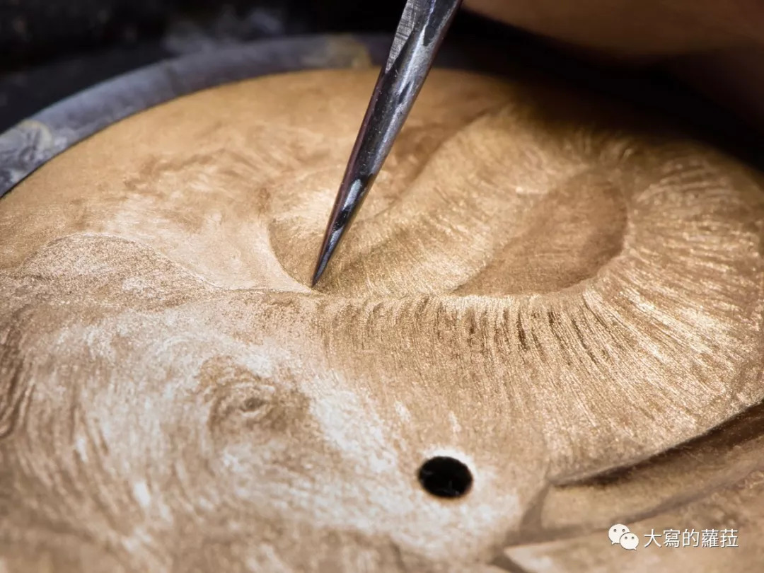 Richard Maier必须在每一平方毫米至少进行数以千计的凿点与雕线,因此在放大镜下,雕制动物图案的每一根毛发甚至背景的细节,都是不可思议的细腻,甚至我认为细腻二字已经无法形容,其逼真的效果与细节,简直神造。
