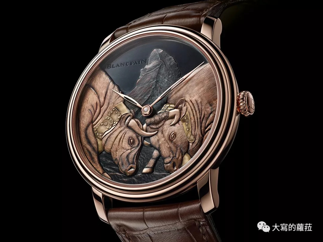 △ 2016年宝珀推出以双牛決鬥为主题、结合Shakudo赤铜与大马士革镶金工艺的“艺术大师”工艺腕表。
