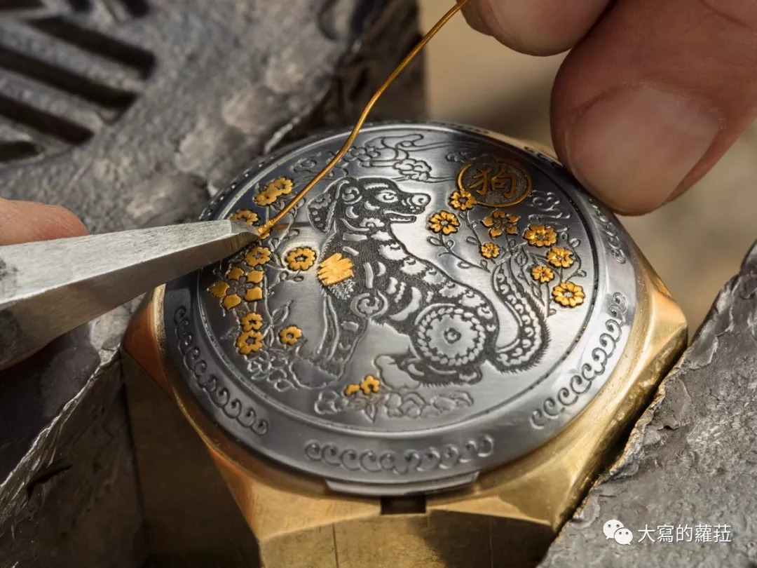 △ 宝玑针对中国狗年推出金雕松师犬结合机刻雕花的狗年限量款式。