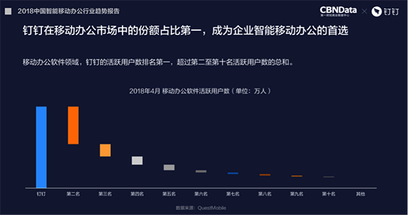 钉钉活跃用户数超2-10名之和,成为智能移动办公首选