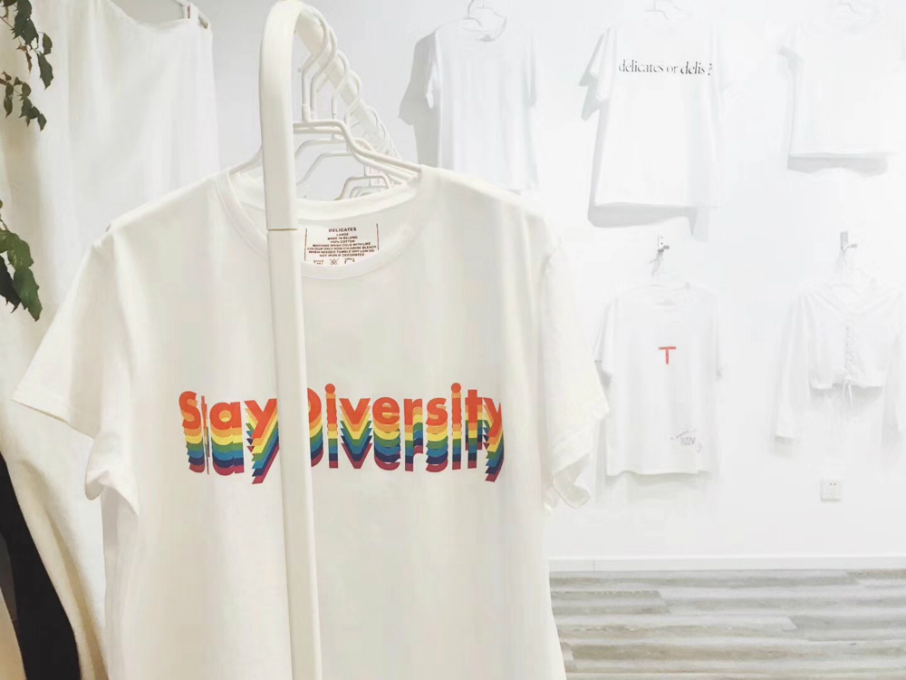 出于品类特质和品牌定位的考量,Delicate Skeleton想把T恤做成消耗品。由于白色T恤穿着时间过长后,就会出现变形变色的情况,单品寿命不会太久,在李佳和黄东杰的概念中,T恤生意和袜子生意一样还是需要一定量的支撑,但不同于快时尚,在“佳和她朋友的T恤店”,消费者永远不用担心找到适合自己的款式之后,一两周后这个款式就下架了。