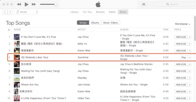 5月20日,3unshine悄无声息地在全球200多个国家和地区上线新歌《3Q》,成绩冲入美国itunes华语流行音乐榜第4名。