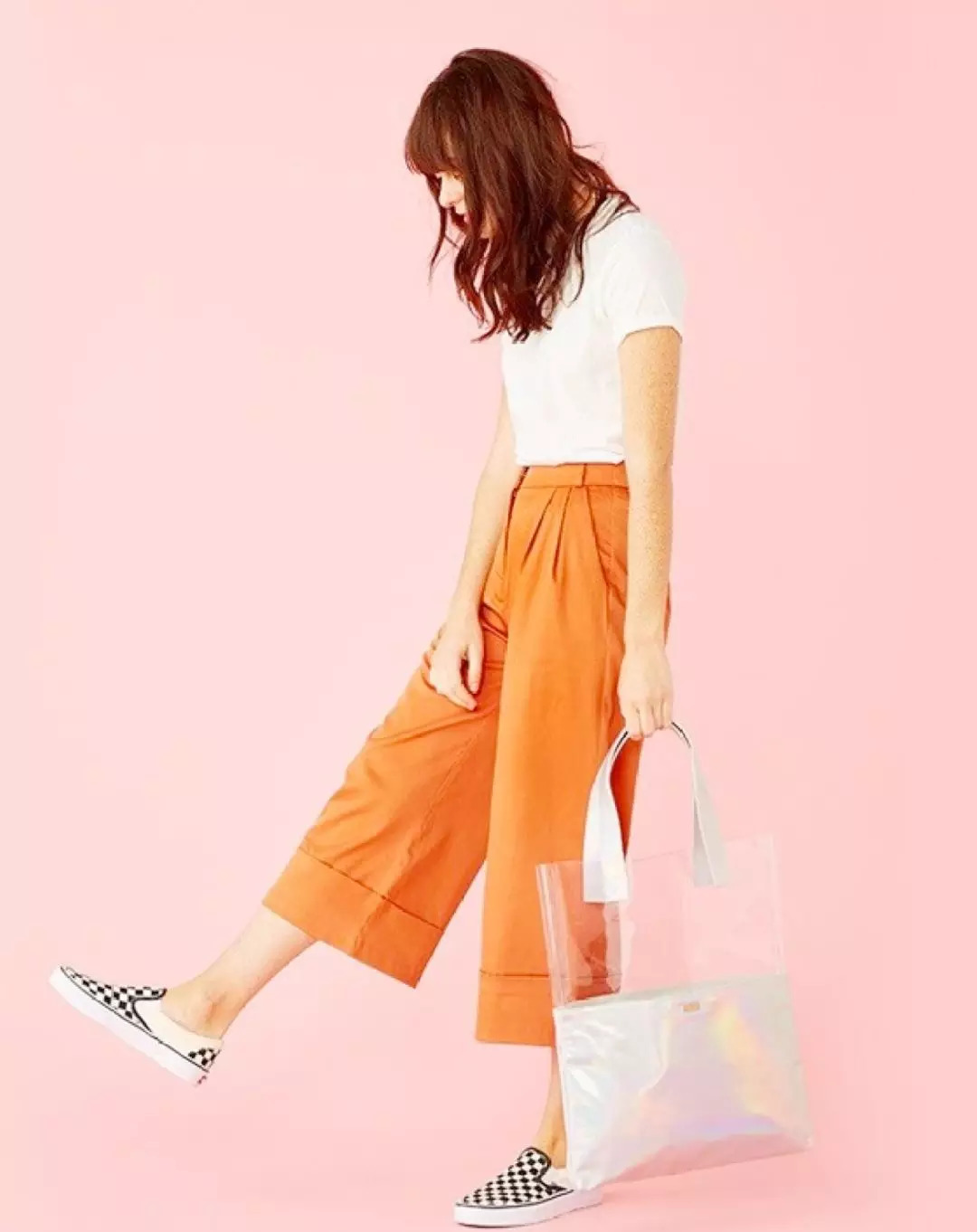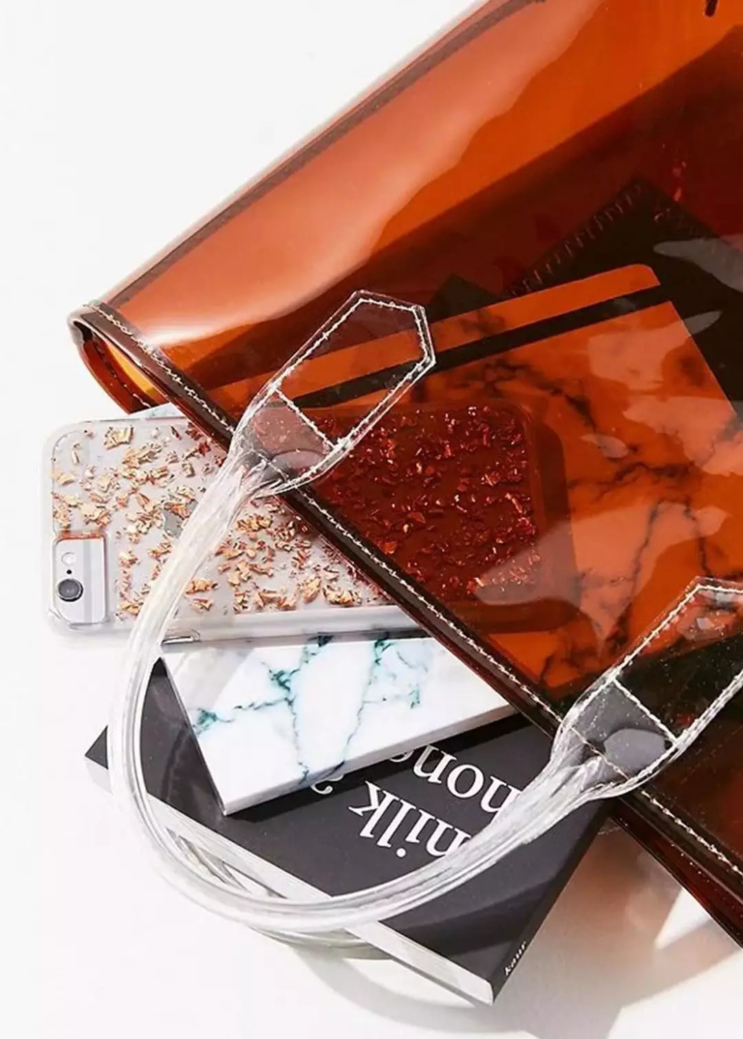 这种方方正正的托特包也很受大家欢迎,而且它相比其他透明包有个很大的优势,就是看着完全没有刻意凹造型的嫌疑,有“不费力就时髦”的属性加持。