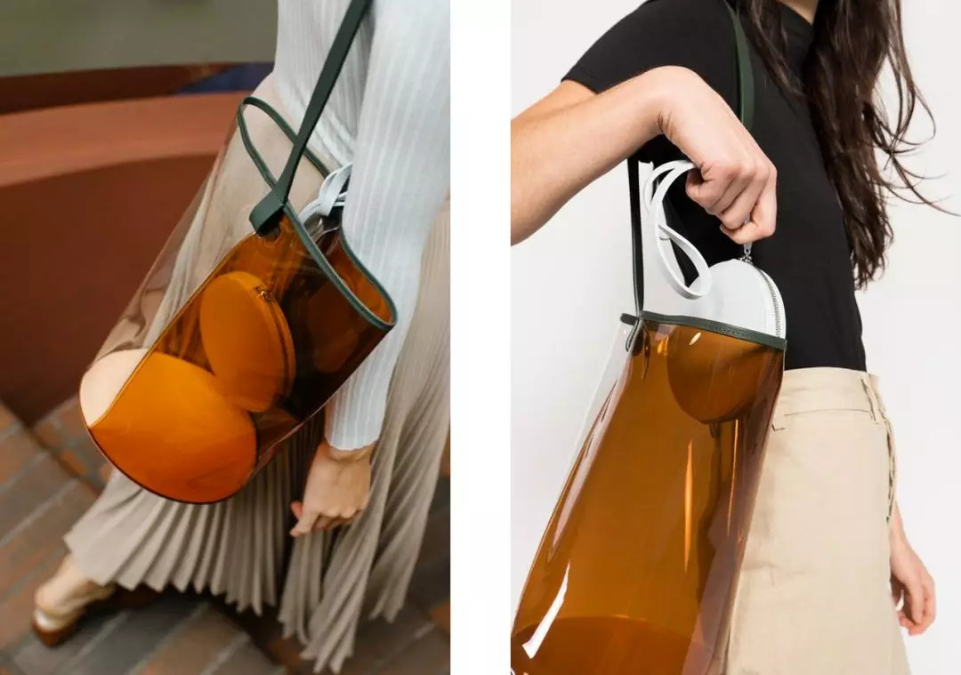 想把钥匙、零钱这种长得不好看的东西遮起来,把看着就很高级有品的东西露出来,你可以挑内附牛皮小袋子的透明托特包,