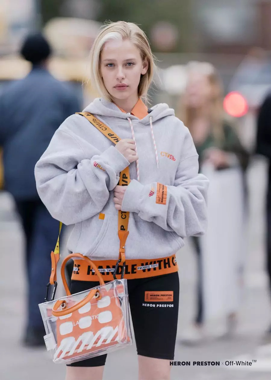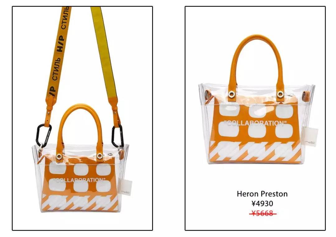 所以我更推荐客官买这种设计师给你配好的大包套小包的透明包。像Heron Preston × Off White的这只包优势就很大,