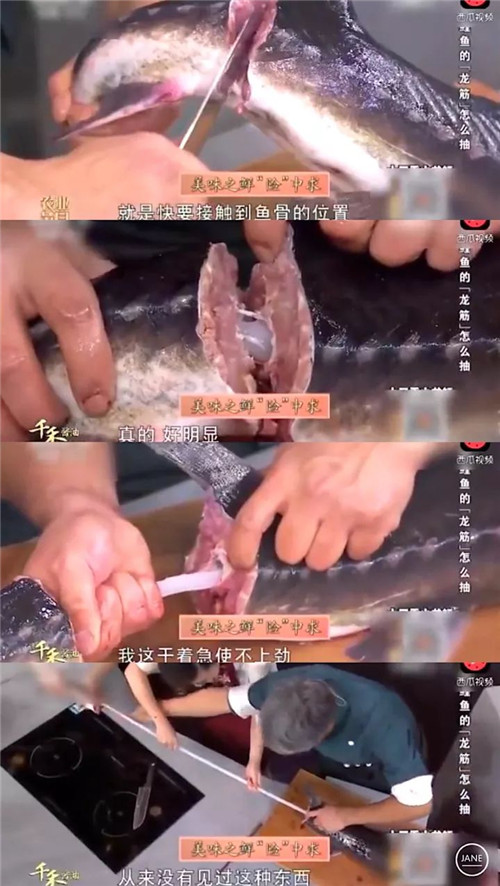 一般来说鲟鱼的体型越大,龙筋的品相越好。龙筋韧度不凡,因此取出的过程十分费力。