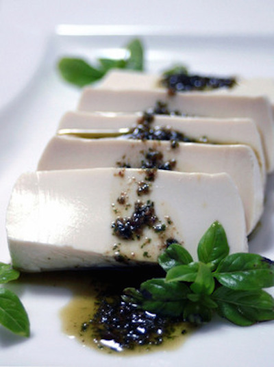 用适量盐把木棉豆腐渍上一会儿,除去水分,豆腐就变得像芝士一样浓厚绵软了。最后在上面浇上自己喜欢的作料,如黑胡椒和橄榄油的组合,或芝麻油配葱花。这种吃法能够最大程度地还原豆腐的浓香。