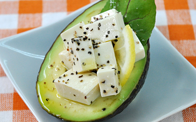 牛油果在日本价格甚至比苹果等水果要便宜很多,所以在他们的菜里经常可以看到牛油果的身影。将牛油果切成两半,除去种子,把盐渍豆腐放进去,上面浇上黑胡椒和橄榄油,再挤上一些柠檬汁,一道美味又抗氧化的美容食品就出炉了。