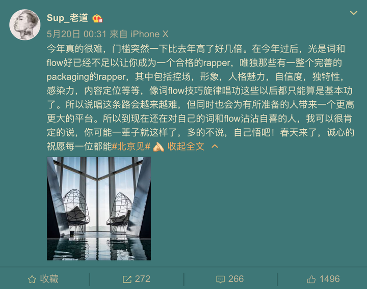 随后,PO8在其个人微博中对此事做了澄清,不过关于此次《新说唱》的评选标准的讨论却并没有停息。在海选的最后一天,作为分站海选评委的老道发了一条微博,简明扼要地总结了节目选拔的方向。
