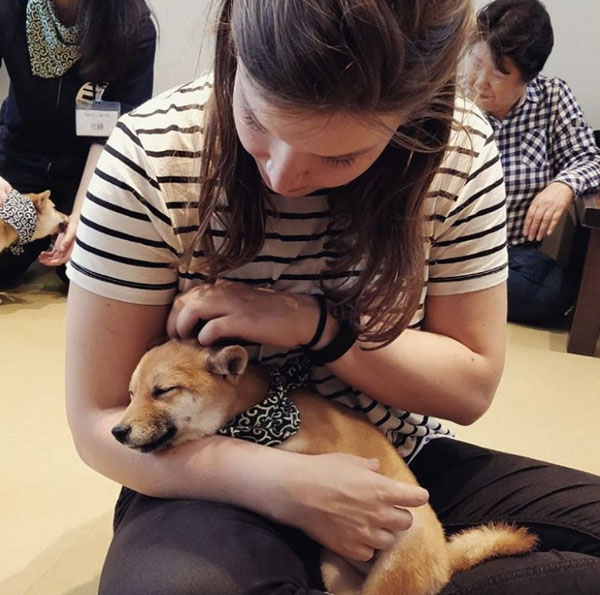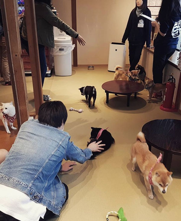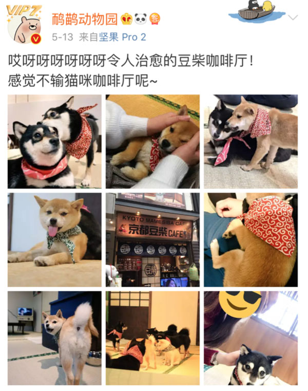 这是前不久位于日本冈山县的豆柴咖啡厅在京都开了一家分店,有很多人慕名去撸。