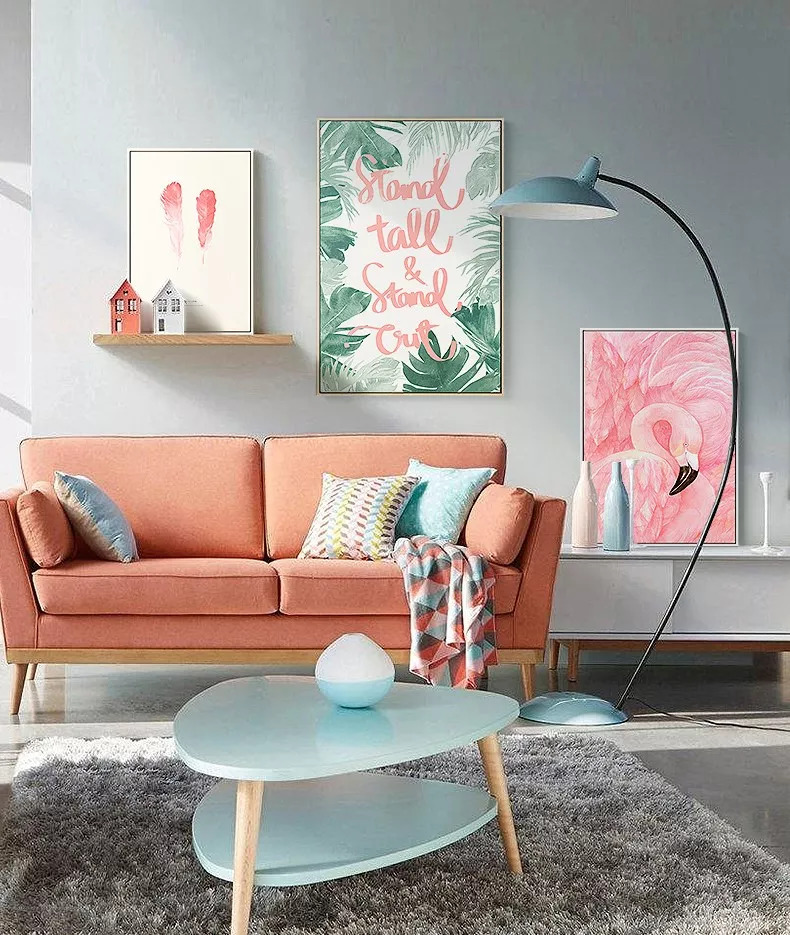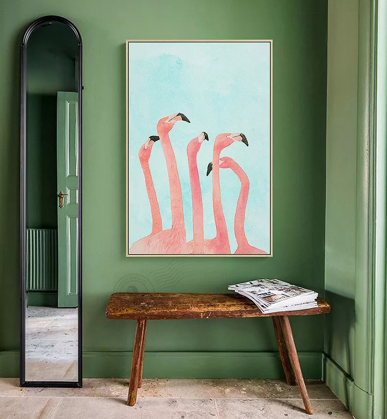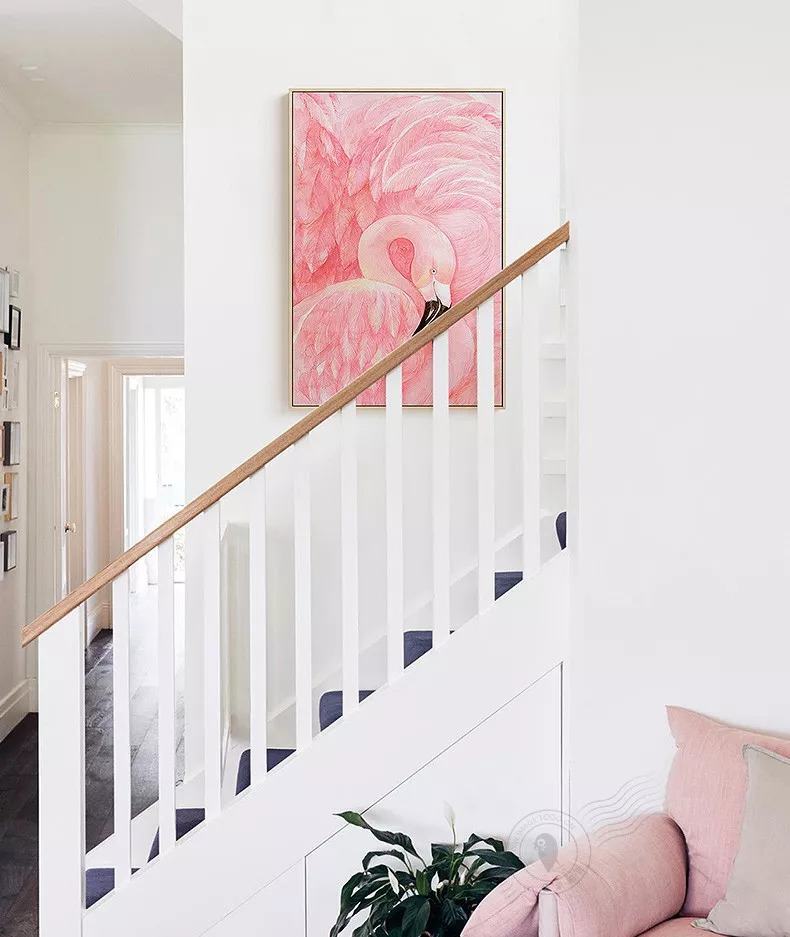 如果觉得植物略显单调,不妨试试动物系装饰画。作为世界上最爱美的动物之一,火烈鸟可以说是ins上最火爆的元素了,挂一副火烈鸟的装饰画在家里,随手一拍就是ins风,简直是小仙女们的不二之选了。