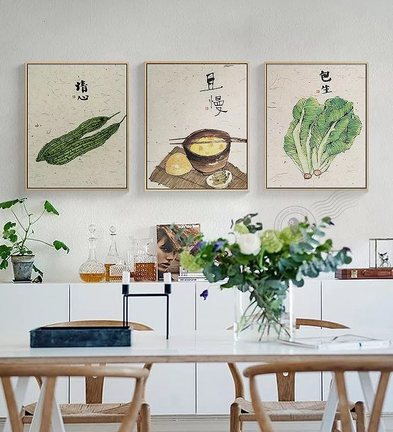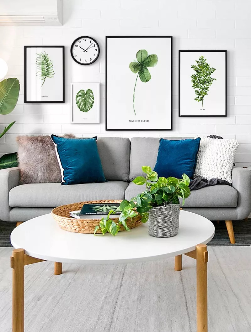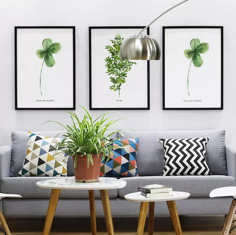 植物系挂画会不仅可以让家里看起来生气勃勃,而且跟鲜活的绿植搭配在一起更是相得益彰。