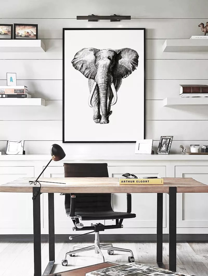 另外,马、鹿、大象这样的大型动物也是热门选项,黑白剪影搭配大面积留白,宁静致远,非常有意境。