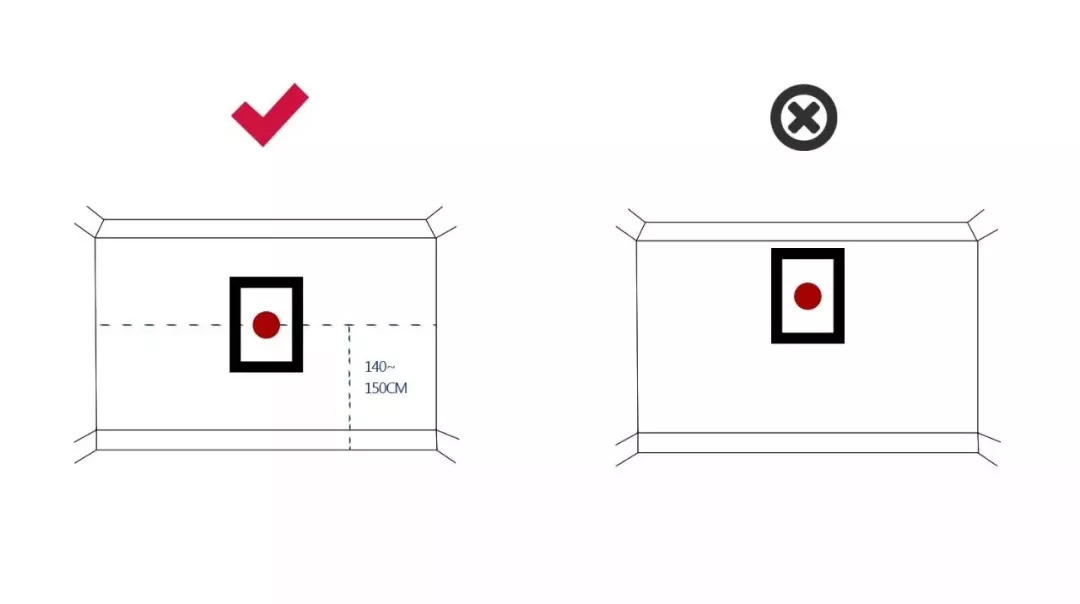 一般来说,成年人站立时的平视高度在距地面1.4~1.5米的地方,装饰画的中心点摆放在这个高度是最为舒服的,也是最不会出错的,对于家居小白来说是一次最佳的尝试。