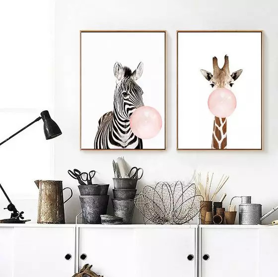 其实除了火烈鸟,鸟、兔子这样的小动物装饰画也是不错的选择,搭配绿植,整个空间都会灵气十足,仿佛置身于山谷丛林之中。