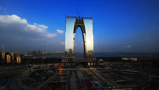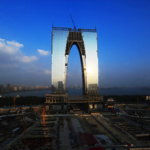 东方之门项目是位于江苏省苏州市一座301.8米高的摩天大楼。项目分南北两楼,在层高238米处连接起来,形成一个类似于门的造型,整体高度相当于法国凯旋门的6倍。
