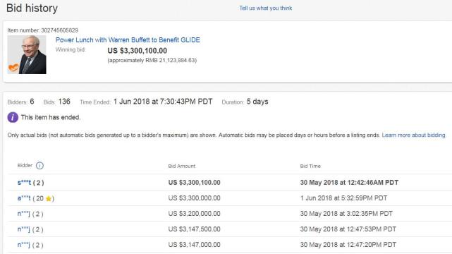 据外媒报道,2018年“股神”沃伦·巴菲特(Warren Buffett)年度慈善午餐拍卖拍出330.01万美元的天价,约合人民币2112万元。今年的拍卖活动于5月27开拍,于美国东部时间6月1日22时30分(北京时间6月2日10时30分)结束。