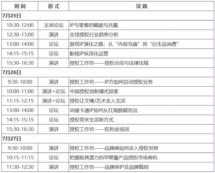 除了授权展之外,在活动期间主办方还将举办中国国际授权业峰会,邀请全球授权业大咖从卡通动漫、游戏、影视、文博艺术等领域分享授权案例与经验,并通过一系列的“授权工作坊”,讲解合同与法律法规、权利金、品牌保护等授权业者关心的实用议题,共同推动中国授权业发展。