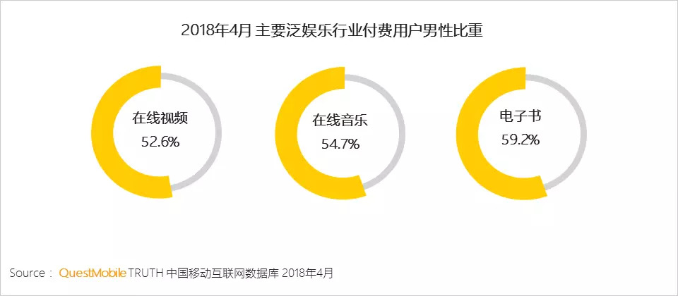 QuestMobile数据显示,尽管在泛娱乐行业的渗透率方面略低于女性,但男性却是泛娱乐行业付费主力。男性在消费时追求愉悦感的特征凸显。