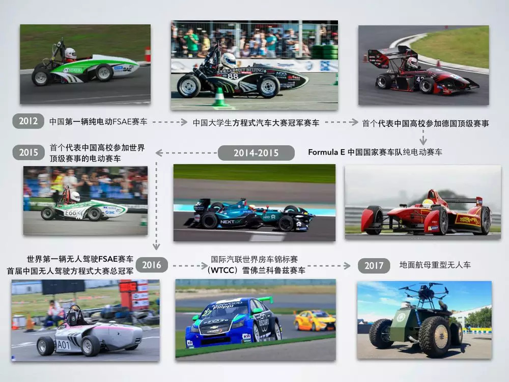 他们9次为国出战并获2017年“中国方程式汽车大赛”总冠军、“国际汽联方程式锦标赛世界车手总冠军”等10余奖项;并在2017年联合中国汽车学会创办了“中国无人驾驶方程式赛车大赛”。