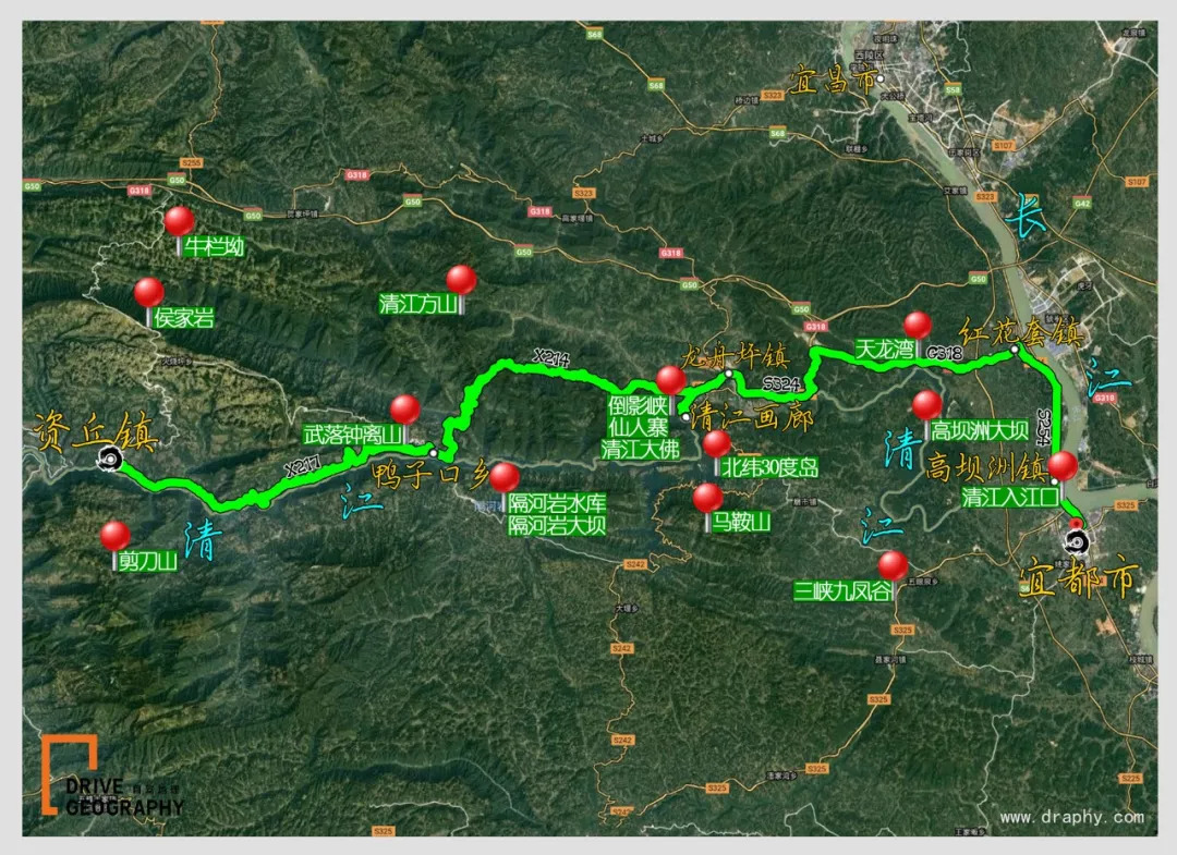 资丘镇40km 鸭子口乡 50km清江画廊 6km 龙舟平镇 30km 红花套镇 18km 宜都市