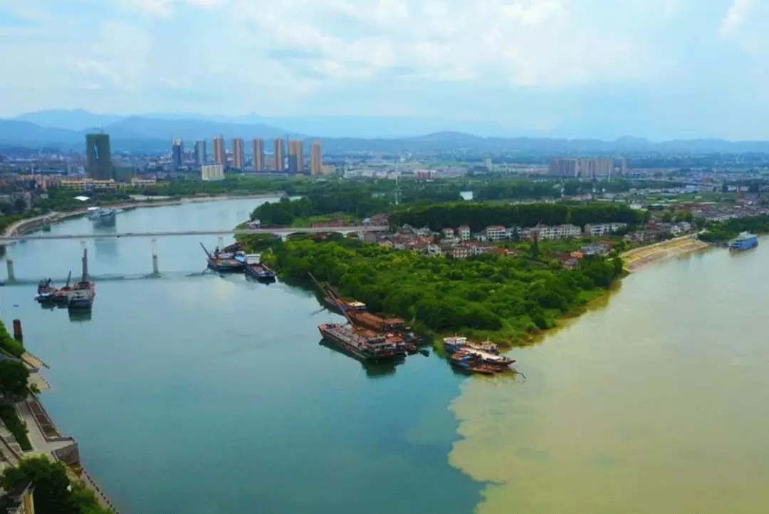 在祖国大地上,两条河流相遇,然后愉快的齐头并进,并不是什么稀罕事,但有一些河流的交汇,却碰撞出奇妙的火花,为此还诞生过一个成语“泾渭分明”,用来形容清江与长江的交汇也很合适。在宜都的两江交汇处,清江舒缓有致,江水碧绿清澈;长江则气势恢宏,江水泥浊黄浑,清与浊、绿与黄之间形成了一条泾渭分明的分界线。