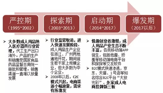 在那段时期,中国情趣用品产业主要以代工生产欧美订单为主,大众仍没有很好的购买渠道,直到2003年,中国电商崛起为行业带来一剂催化剂,始终存在的大众需求借此得以被满足。