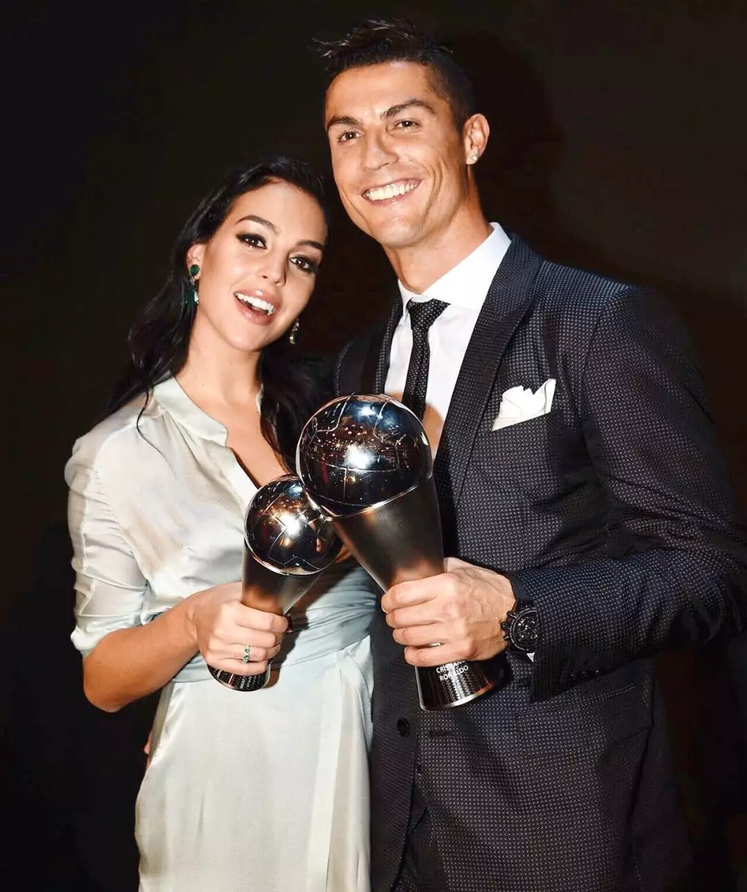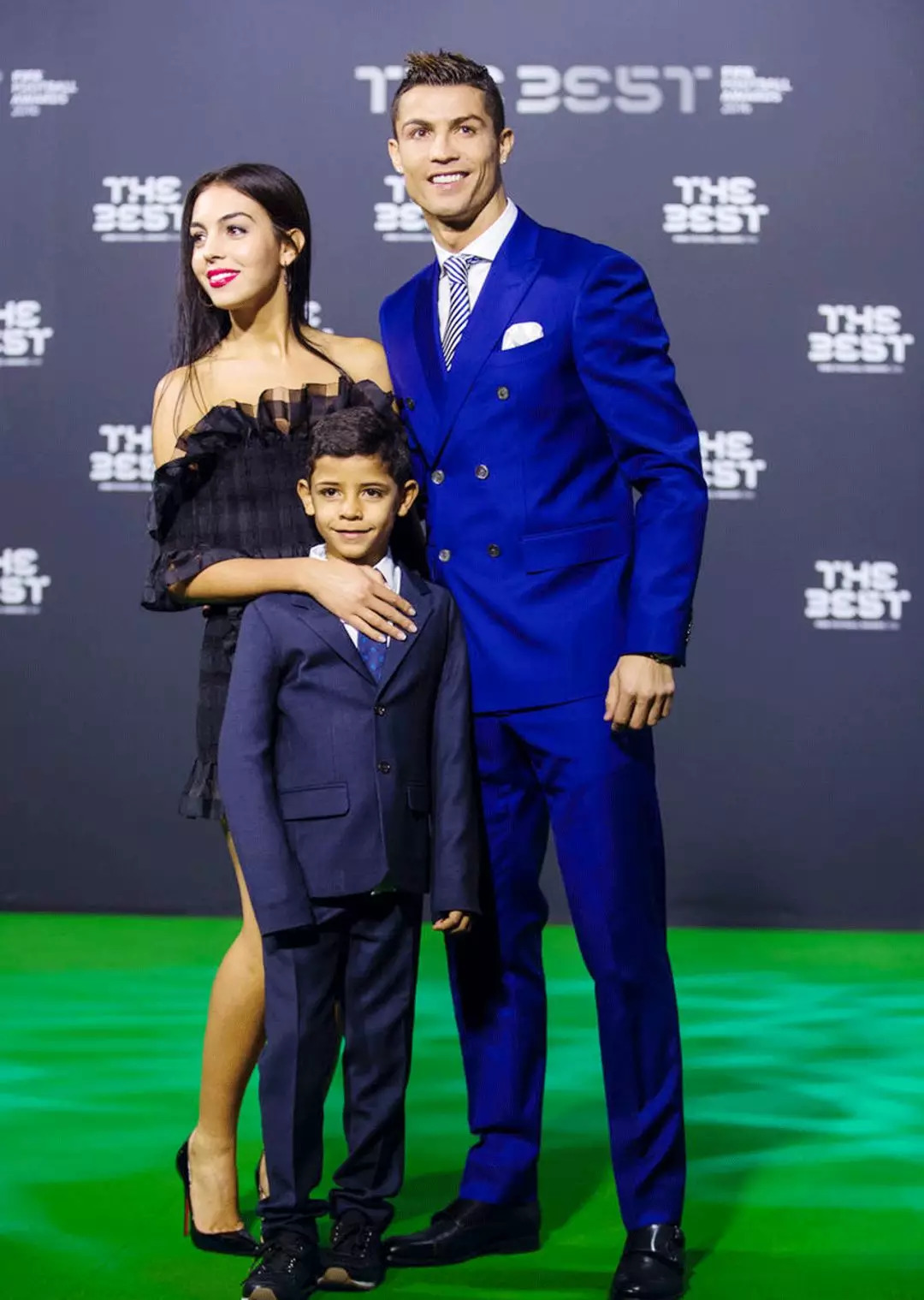 终于在一次FIFA的年度颁奖盛典上成双入对公开恋情,而且还是和C罗的儿子一起,以一家三口的姿态亮相。