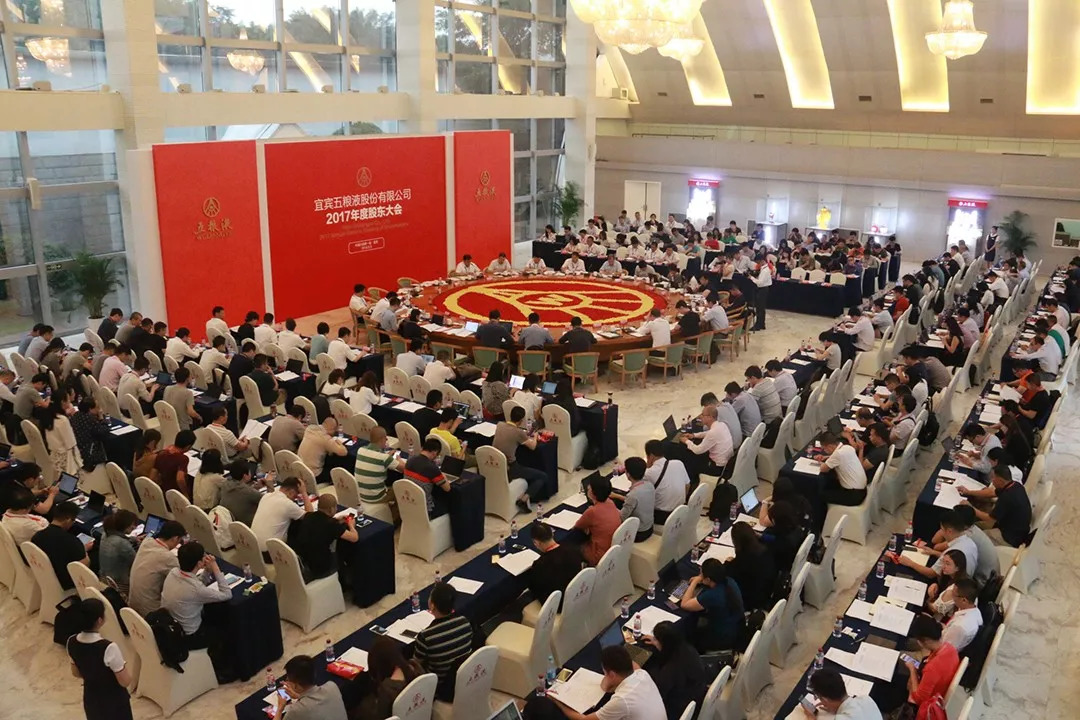 6月8日,五粮液股份公司2017年度股东大会在四川宜宾召开。五粮液集团公司党委书记、董事长李曙光,五粮液集团公司总经理、股份公司董事长刘中国等高管及投资人、媒体人士200多人参加了会议。