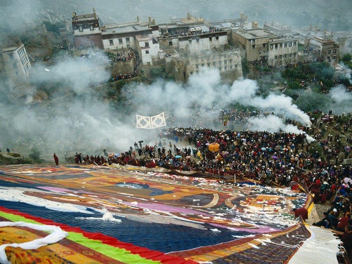 9. 哲蚌寺由黄教创始人宗喀巴之弟子降央曲吉-扎西班丹于公元1416年创建,是藏传佛教格鲁派地位最高的寺院,也是世界最大的寺庙。每年雪顿节(藏历六月三十日),哲蚌寺都会举行晒佛活动,吸引众多游客前来观看。