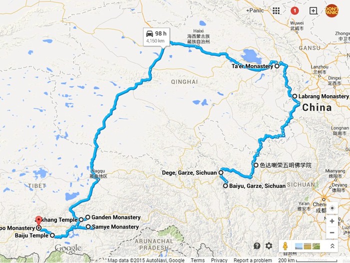 11. 甘丹寺位于海拔3800米的旺波日山顶上,由格鲁派创始人宗喀巴大师于1409年亲自创建,并圆寂与此。所以,甘丹寺被认为是格鲁派的祖寺。