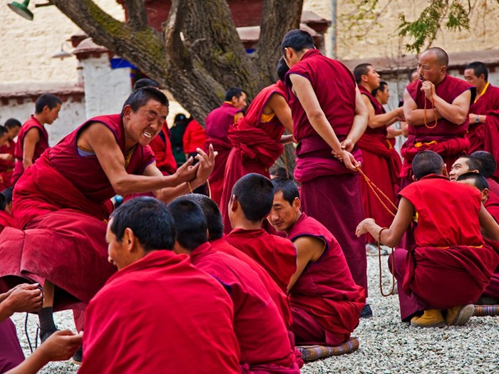 10. 色拉寺位于西藏拉萨市区北郊的乌孜山南麓,与甘丹寺和哲蚌寺合称为“拉萨三大寺”,是三大寺中建成最晚的一座。“色拉”在藏语里是野玫瑰的意思。传说山下修寺时这里长满了野玫瑰,因此而得名。 色拉寺的喇嘛辩经功课会在每周一至周五下午固定进行,且向游人开放,故最为著名。