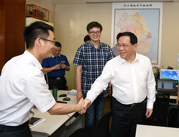 为进一步推动长三角一体化发展,今年1月,长三角区域合作办公室成立。近5个月来,来自三省一市的工作人员汇聚上海、集中办公,共同研究发展议题、加强需求对接、协调重大项目。李强上午走进办公室,同大家亲切交流,对同志们前一阶段富有成效的工作表示感谢。
