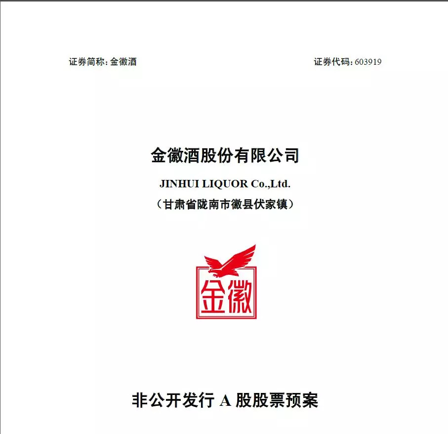 6月11日晚间,金徽酒(603919.SH)突然在上交所发布了一份《非公开发行A股股票预案》,本次非公开发行股票拟募集资金总额不超过5.3亿元,扣除发行费用后全部用于陇南春车间技术改造项目、金徽酒生产及综合配套中心建设项目和补充流动资金。