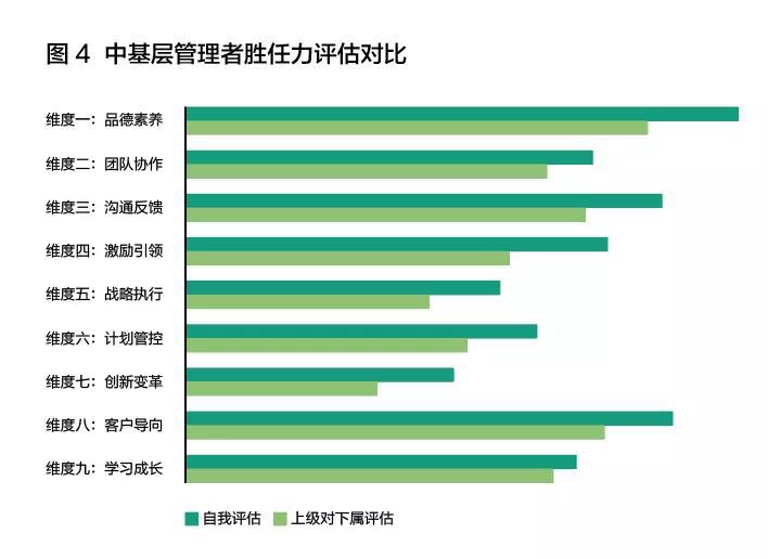 由此看来,中层管理者在落实经营规划、整合调配资源、连接战略决策与目标实现的综合能力上还需要继续努力,企业也要加强助推力促进中层管理者战略执行能力的升级提高。