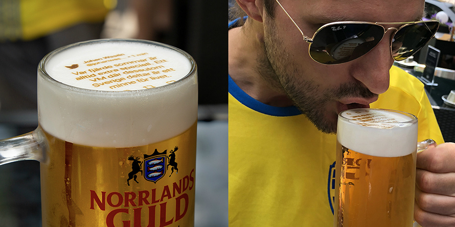 这款特殊的社交啤酒在瑞典和丹麦队的热身赛中首次亮相,并且会在整个世界杯期间,在瑞典的几家酒吧里出现。