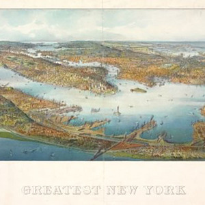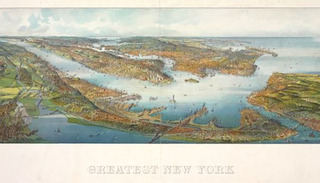 亨利·韦尔奇(Henry Wellge)是一位出生于德国的地图绘制师,他的作品超过150件,主要描绘的是中西部小城市,包括特克萨卡纳(Texarkana)、比灵斯(Billings)、塞尔玛(Selma) 、杜鲁斯(Duluth)等城市。这幅纽约地图绘制于1911年,六年后亨利·韦尔奇逝世。从19世纪40年代到20世纪早期,鸟瞰式的地图成为当时的流行趋势。鸟瞰地图的绘制是一种比较微妙的技巧,实际是从想象的角度来进行绘制,需要绘图师将制图技巧与灵敏的审美结合起来。科利尔与艾佛斯(Currier & Ives)及当时的其他出版社利用新兴的彩色印刷术,生产了北美洲数千个地点的廉价地图。