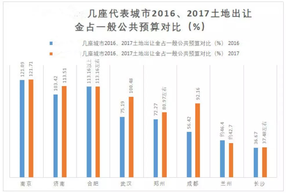一是政府方面的。最近有媒体统计了去年兰州、合肥、南京、济南、武汉、长沙和郑州等几座有代表性的城市,土地出让金占一般公共预算的比例,结果发现,占比大都不小,而且多数去年还在上升。
