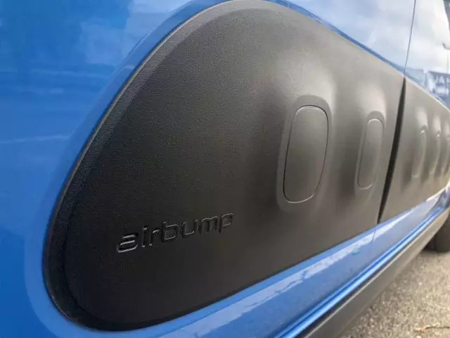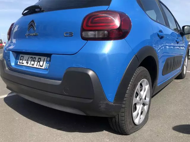 蓝色的车身比较骚气,这种租车公司特征色也告知路人甲,我这车是租的,砸玻璃偷东西的好机会。分体式大灯采取常用套路,上面是行车灯,中间是大灯,下面是雾灯。车门上有雪铁龙特产airbump橡胶垫,这东西雪铁龙的广告里专门描述了作用,除了防止擦碰,当前门打开的时候,最突出部位的橡胶能防止不小心碰坏旁边的车。其实我担心的根本不是这个,被旁边的车开门把我的车身碰到。