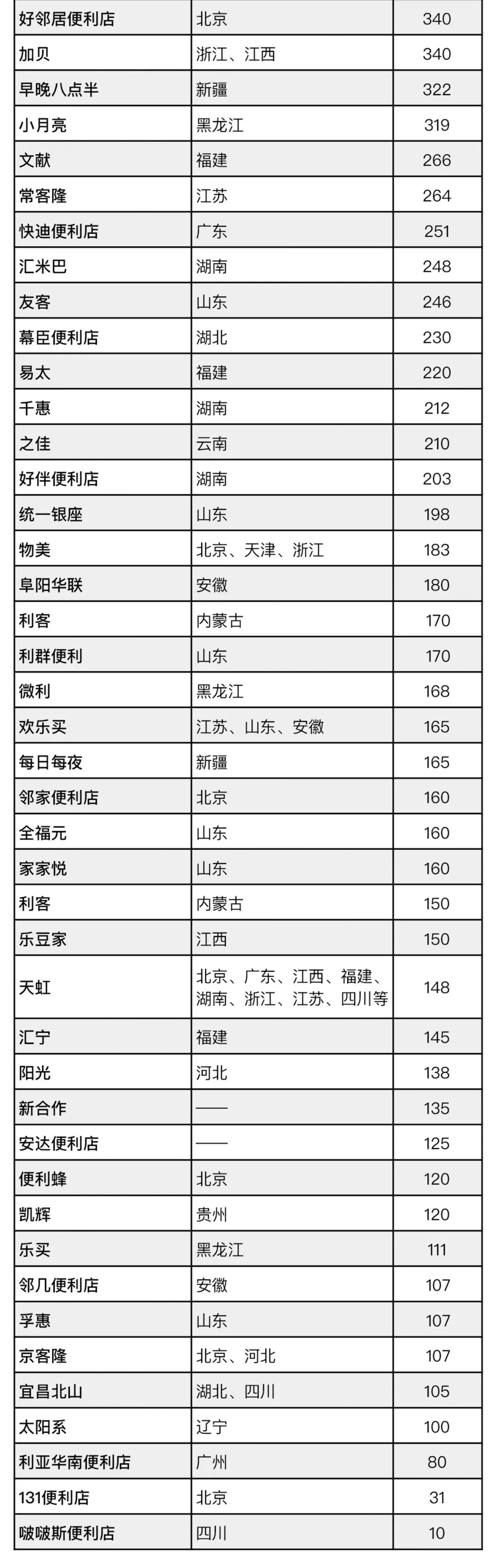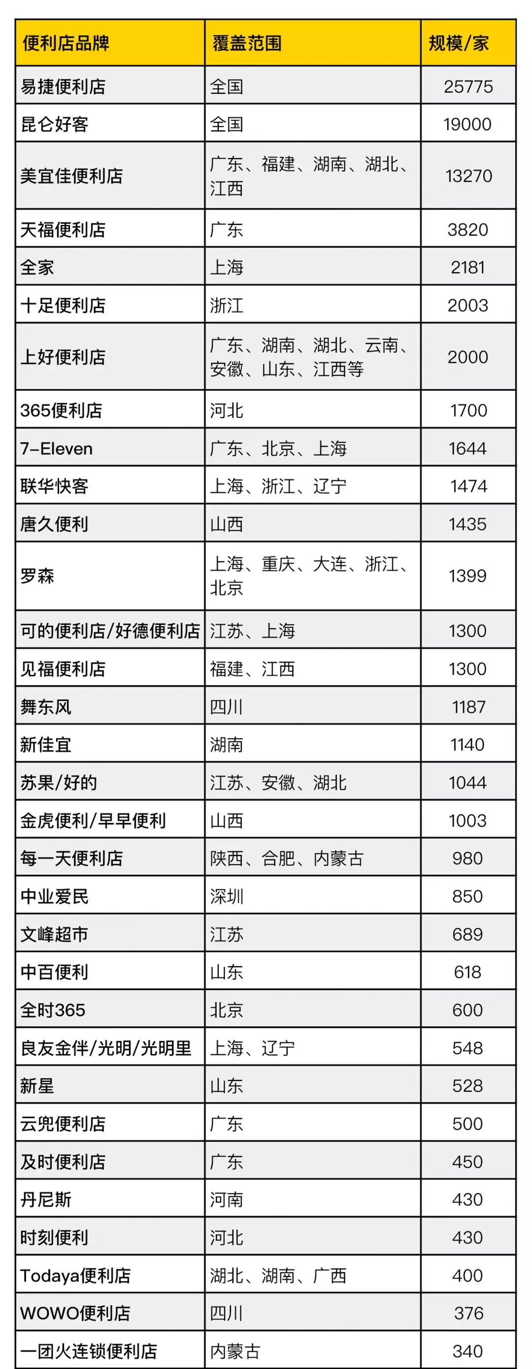 国内便利店门店数目统计(数据来自其便利店官网和公开渠道)