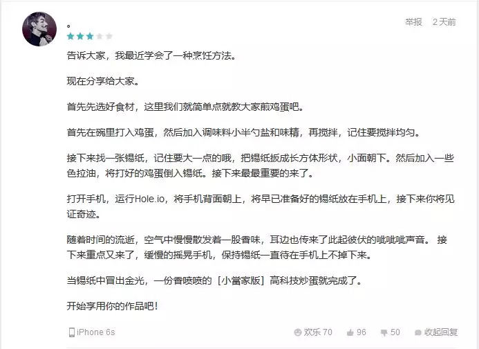 光靠买量不太可能在短短一天内百度指数就从0蹿升到4万多,《Hole.io》的爆红必然是社交平台的引爆所致。此前国内多款小游戏都是因为抖音、快手等短视频平台的带动而突然火爆,那么《Hole.io》是否同样如此?手游那点事在App Store评论搜索关键词后——